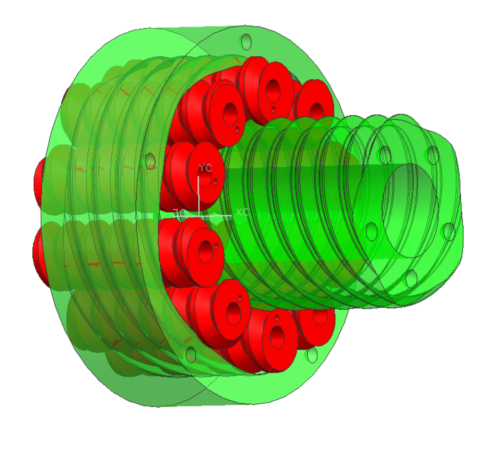 从拿到的结构看,丝杆的外啮合是反向的,丝杆的内啮合是同向的,也就是在设计中,只要确定中心丝杆的旋向,滚动丝杆的旋向与其相反,螺母丝杆的旋向与滚动丝杆相同